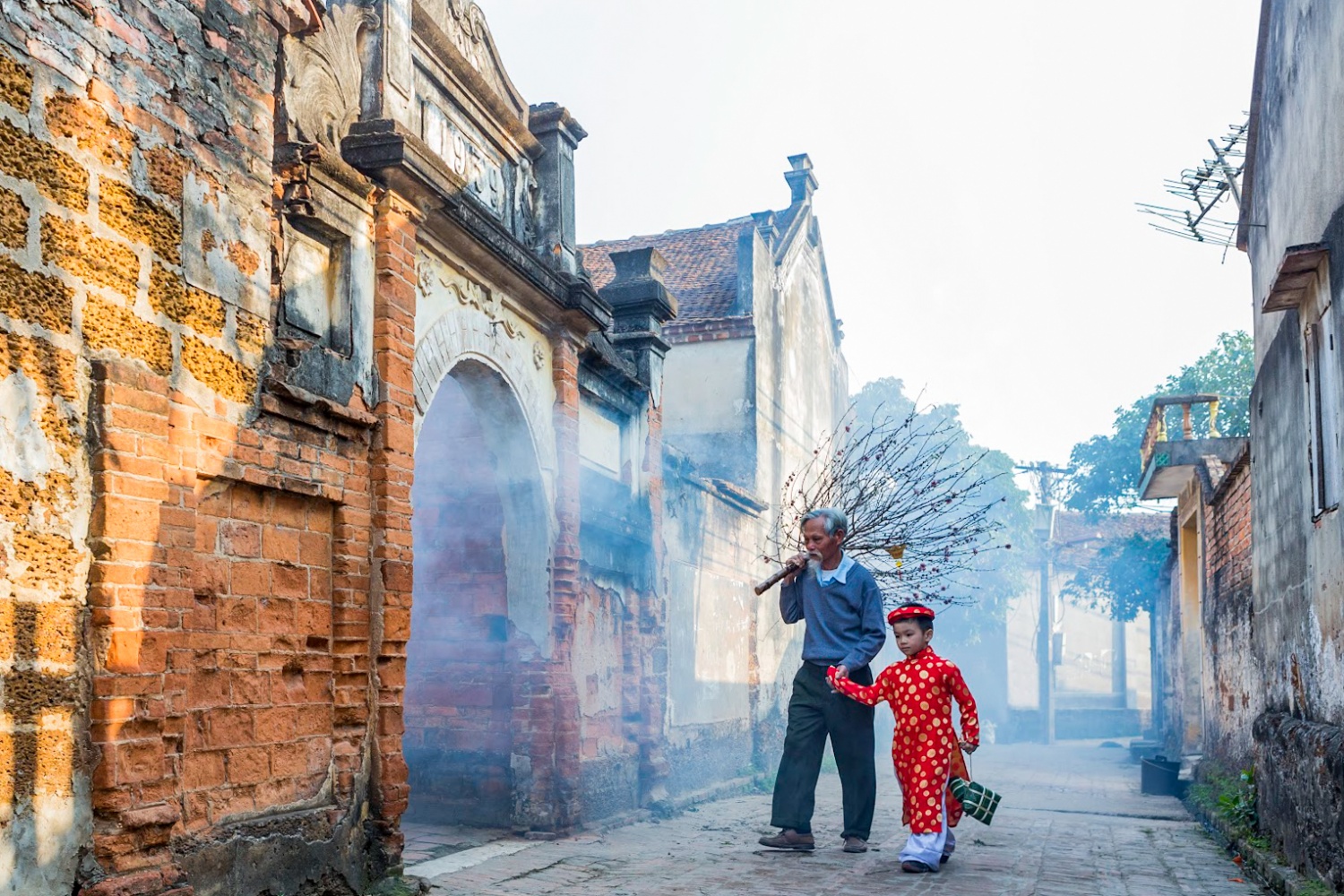 Nhớ hồi còn bé, mỗi dịp Tết đến, tôi cùng em trai lại được bố chở về quê ở chùa Hương trên chiếc Honda Cub. Hai anh em thay nhau nằm ngủ trên chiếc gối đặt ở gióng xe, mặc cho con đường phía trước cứ dài hun hút. Tôi vẫn nhớ như in con đường đê nhỏ xíu, xe cộ đông như mắc cửi, bố phải chở hai anh em lên hẳn mặt đê. Hồi ấy, sao mặt đê trông mà rộng thế, trải dài bên dưới là những đàn bò nhởn nha gặm nốt những mảng cỏ úa cuối mùa.