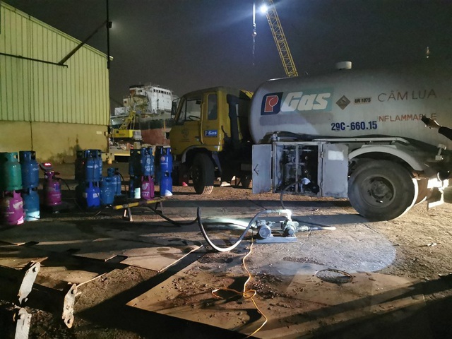 Trước đó, tối ngày 17/1, Đội Cảnh sát PCCC&CNCH thuộc đơn vị nhận được tin báo của người dân về việc có hoạt động sang chiết trái phép tại cảng trên. Khi tới khu vực trước kho chứa hàng của cảng, lực lượng phát hiện một nhóm đối tượng đang sang chiết khí hóa lỏng trái phép LGP từ xe chở bồn có BKS 29C - 660.15 sang 2 bình chứa loại 12kg đặt trên cân điện tử qua hệ thống đường ống mềm.