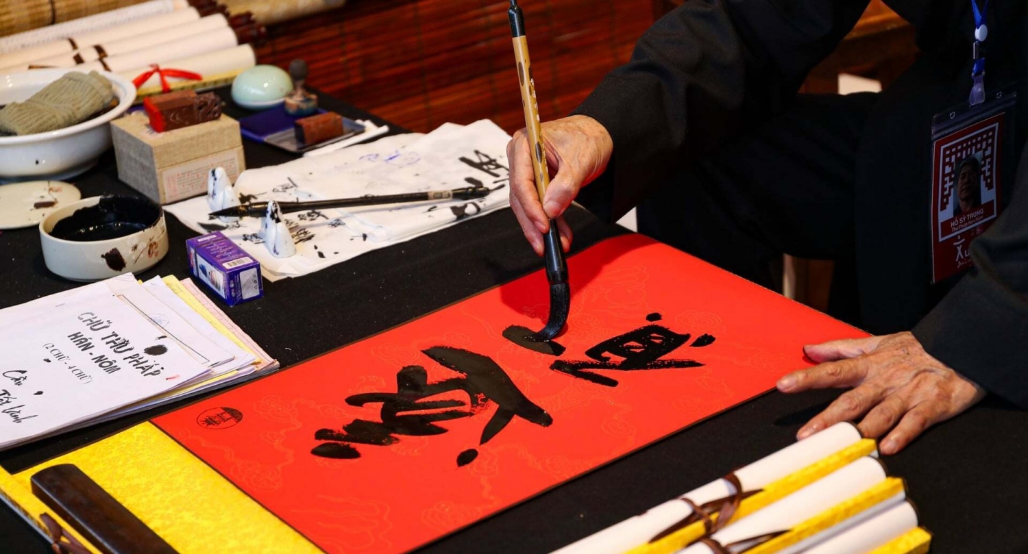 Khu vực Hội chữ Xuân tại hồ Văn tấp nập người ra vào. Trước các gian lều đỏ rực, các ông đồ chăm chút từng nét bút trên nền giấy điều, trao gửi những chữ “Phúc”, “Lộc”, “Thọ”, “Trí”, “Đạt”… như lời chúc tốt lành đầu năm mới. Nhiều người kiên nhẫn xếp hàng chờ đến lượt, bởi với họ, xin chữ không chỉ là một phong tục đẹp mà còn là cách nhắc nhớ bản thân về tinh thần hiếu học và khát vọng vươn lên.