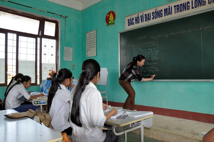 Chiều 8/10, chúng tôi qua thăm trường thì thấy các lớp vẫn học. Cô Tuyết đang ôn luyện thi cho 5 học sinh chuẩn bị cho kỳ thi học sinh giỏi môn Sử cấp huyện sắp tới. Một cô và 5 học sinh, con số không lớn so với các môn tự nhiên nhưng đây là việc làm hết sức khích lệ của thầy trò nhà trường. Bởi môn Sử đang bị xem nhẹ ở nhiều nơi nhưng không khí học tập ở đây rất nghiêm túc, hăng say. Chiều muộn, chúng tôi còn thấy 5 em học sinh này cầm hương hoa đến viếng Đại tướng tại quê nhà.