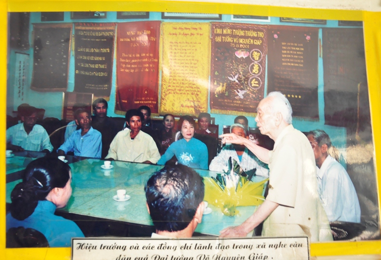 Trong lòng mỗi thầy cô và học sinh nơi đây đều in dấu hình ảnh của Đại tướng thật rõ nét. Chúng tôi qua phòng truyền thống của nhà trường thì được xem những bức ảnh chụp Đại tướng và thầy cô nhà trường mà lòng rưng rưng. Trông Đại tướng thật giản dị, như một người cha đang nói chuyện với các con sau một thời gian đi công tác xa.