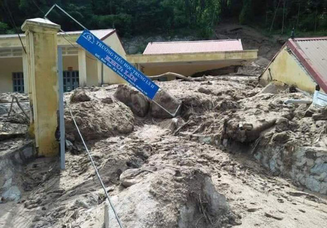 | Nhiều trường, điểm trường bị vùi lấp. |