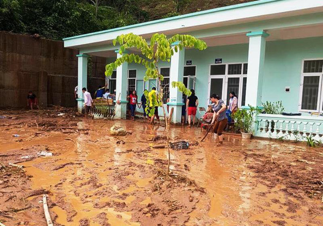 | Công tác khắc phục hậu quả gặp nhiều khó khăn vì lượng bùn đất quá nhiều. |