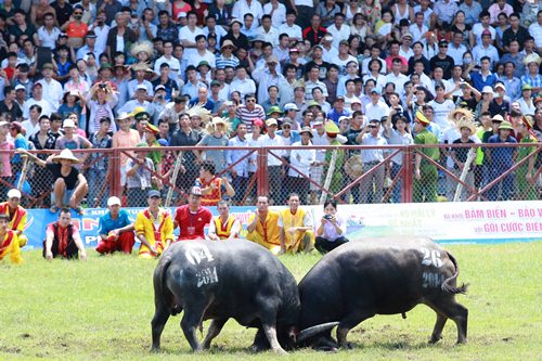 Trận chung kết giữa hai ông trâu số 04 của ông Vũ Văn Thạnh (phường Vạn Hương) gặp ông trâu số 26 của ông Đào Văn Thuyết (phường Minh Đức) khép lại chóng vánh với phần thắng nghiêng về ông trâu số 26