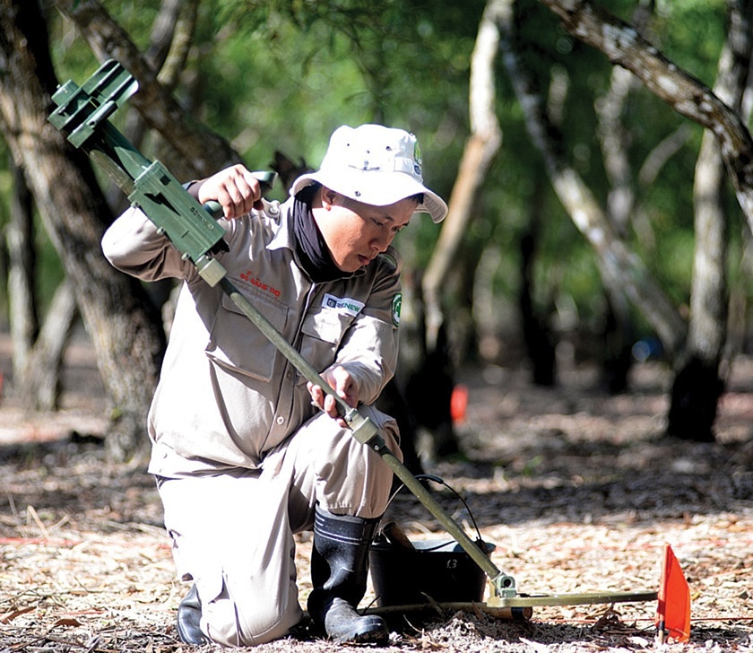 | Những người phụ nữ ấy, người nhiều tuổi và làm công việc này đã mười mấy năm, người trẻ tuổi cũng đã đôi năm đối diện với hiểm nguy nhưng họ không hề xem việc mình đang làm là đặc biệt. Nói là vậy, nhưng có tận mắt chứng kiến mới thấy những nỗ lực đến phi thường của những người đi rà phá bom mìn, mà đặc biệt lại là nữ. |