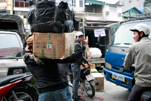 Khu chợ Đồng Xuân tập trung một lực lượng lớn những người phụ nữ già trẻ làm đủ loại công việc mà chủ các sạp hàng trong chợ thuê. Dù công việc là vác những bao tải hàng nặng vài chục cân hay đơn giản chỉ đẩy xe hàng, xếp lại đồ họ đều nhận. Không phàn nàn, không tranh cãi, dù nắng hay mưa họ vẫn miệt mài đổi sức lấy những đồng tiền công, dù nhỏ nhưng vẫn đáng quý.