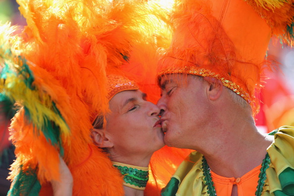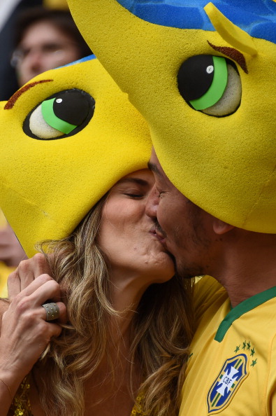 Cùng với những sắc màu dân tộc rực rỡ và tình yêu bóng đá cuồng nhiệt, trên các khán đài World Cup Brazil 2014 không hề thiếu những khoảnh khắc của những nụ hôn ngọt ngào.