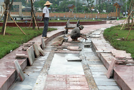 Nhớ lại những ngày đầu đi vào khai thác, ông Linh bức xúc nói: Ngay khi đưa vào hoạt động, nhiều hạng mục của công viên đã nhanh chóng xuống cấp. Mặt cổng đá lát bị bong trông rất phản cảm. Phía bên trái mặt cổng chính của công viên có tới hàng chục miếng đá lát bị bong tróc. Bên trong công viên, một số chỗ mặt đá lát sân cũng bị vỡ. Đáng chú ý, đoạn cầu thang dẫn lên ngôi nhà ngồi nghỉ cho khách tham quan móng bị lún và mới được trát lại.”