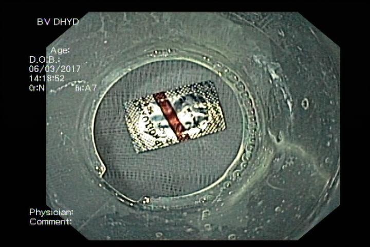 Tại bệnh viện, chị D. được chỉ định nội soi thực quản để kiểm tra. Kết quả nội soi cho thấy thực quản có dị vật là vỏ thuốc có góc sắc nhọn, đâm xuyên niêm mạc thực quản gây chảy máu nhẹ. Người bệnh đã được các y bác sĩ thực hiện nội soi gắp dị vật an toàn và thành công.