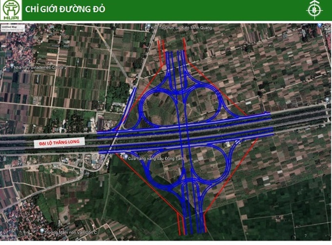 Đối với Đại lộ Thăng Long nằm ngoài phạm vi nút giao sẽ được xác định theo hồ sơ chỉ giới đường đỏ tuyến đường được cấp có thẩm quyền phê duyệt.