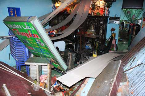 Bên trong quán nhậu, chị Bạch và cháu Nguyễn Hoài Đức (3 tuổi) đang ngủ thì bị xe tông vào. Trần nhà, tường gạch đổ sập đè lên người khiến cháu Đức bị thương nặng. Người dân đã nhanh chóng chuyển cháu Đức đến bệnh viện cấp cứu.