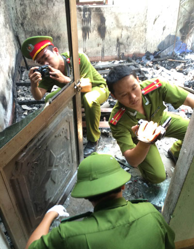 Cơ quan Công an khám nghiệm hiện trường vụ cháy.