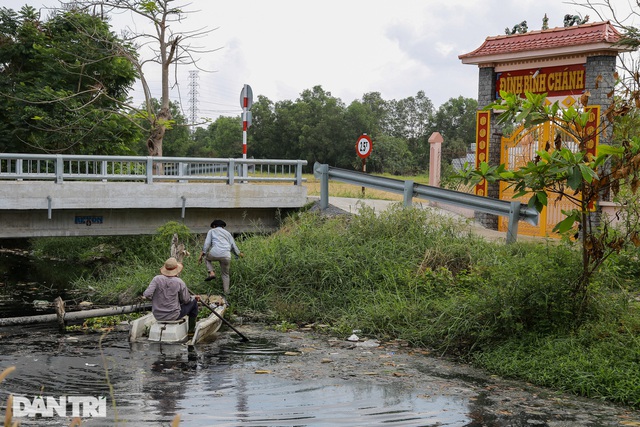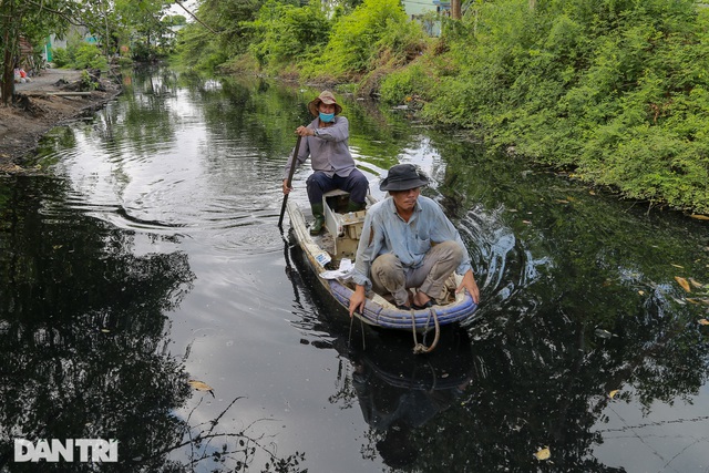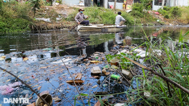 | Con kênh Ông Đồ bị ô nhiễm nghiêm trọng khiến công việc vớt rác của ông Cường gặp nhiều khó khăn. |