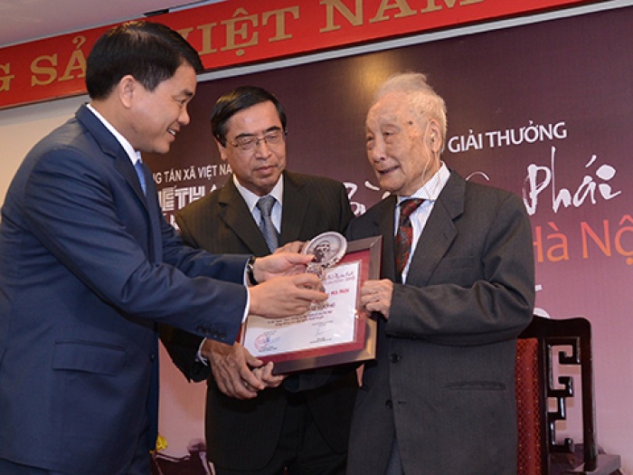 | Chủ tịch UBND TP Hà Nội, Nguyễn Đức Chung trao giải cho Nhà nhiếp ảnh Lê Vượng |