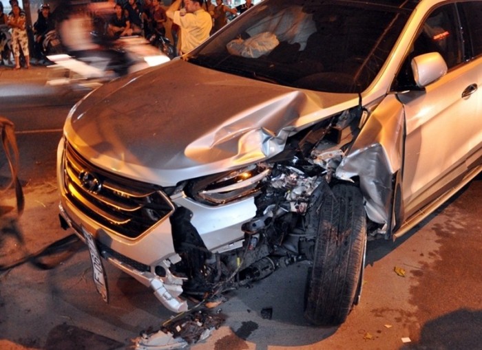 Khi đến gần Bệnh viện Quận 12, xe bị mất lái, lao sang đường ngược lại đâm liên tiếp vào 4 xe máy đang lưu thông. Cú đâm mạnh khiến 4 người trên 4 xe máy văng xuống đường.