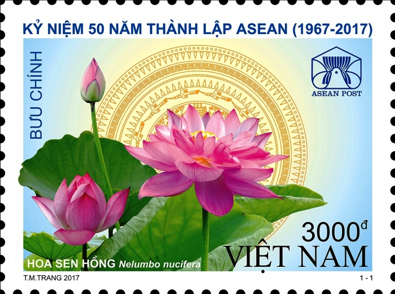 Chủ đề “Tem ASEAN” năm 2017 là “Quốc hoa”. Bộ tem của Việt Nam do họa sĩ Tô Minh Trang (Tổng công ty Bưu điện Việt Nam) thiết kế được thể hiện bằng ngôn ngữ hội họa đặc trưng và sự phối màu thanh tao, trong sáng. Với sự sáng tạo, họa sĩ đã thể hiện hoa sen hồng trên nền tem là hình ảnh trống đồng và logo “ASEAN Post” ở phía trên. Mẫu tem thể hiện bản sắc văn hóa, cốt cách, tinh thần của dân tộc Việt Nam.
