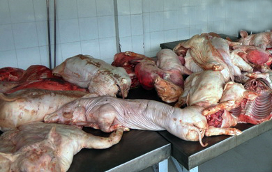 Ngoài ra lực lượng chức năng còn phát hiện 3 chiếc xe gắn máy chở 557kg thịt heo và phụ phẩm từ heo không rõ nguồn gốc. Số thịt heo này bị tím tái, da bị tụ huyết và bốc mùi hôi thối.
