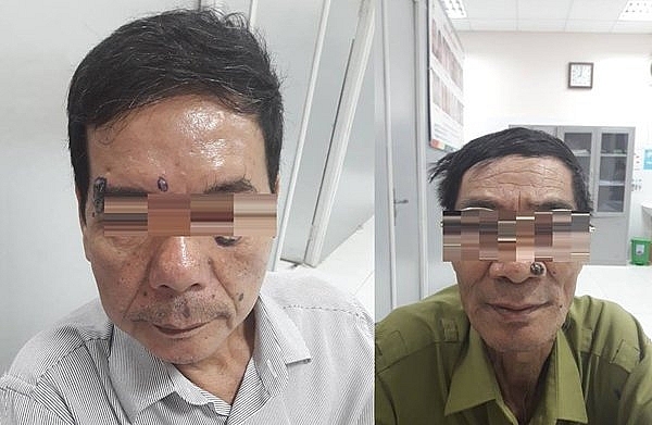 Bệnh nhân thứ hai là ông Đặng Văn B, 62 tuổi, Gia Lâm, Hà Nội cũng phát hiện nhiều nốt ruồi to trên mặt cách đây nhiều năm. Vì không đau nên ông không điều trị. Nhưng gần đây, các nốt ruồi đó to lên bất thường tới rận 3x4cm và 3cm đồng thời chảy dịch màu tối nên mới đến bệnh viện Đa khoa Đức Giang để thăm khám.