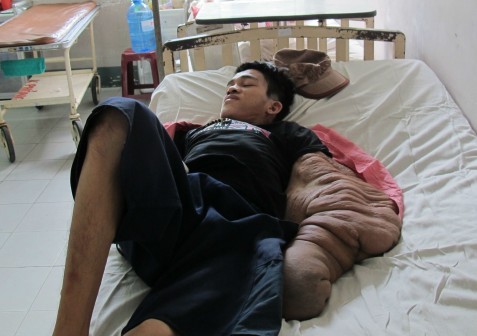 Khối u của bệnh nhân là loại u sợi thần kinh ngoại biên dạng mạng lưới xuất hiện ở tay trái và vùng lưng. Khối u ở lưng nặng khoảng 7 kg chèn ép các bộ phận khác trong cơ thể làm bệnh nhân bị vẹo cột sống, biến dạng lồng ngực. Khối u ở cánh tay nặng khoảng 10 kg cũng làm dị dạng cánh tay của bệnh nhân, ảnh hưởng đến sinh hoạt hằng ngày.