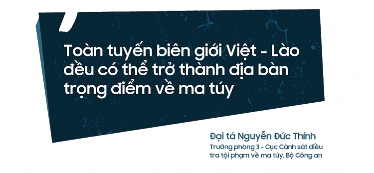 "Toàn tuyến biên giới Việt – Lào đều có thể trở thành địa bàn trọng điểm về ma túy", theo lời đại tá Nguyễn Đức Thính, Trưởng phòng 3, Cục Cảnh sát điều tra tội phạm về ma túy, Bộ Công an.