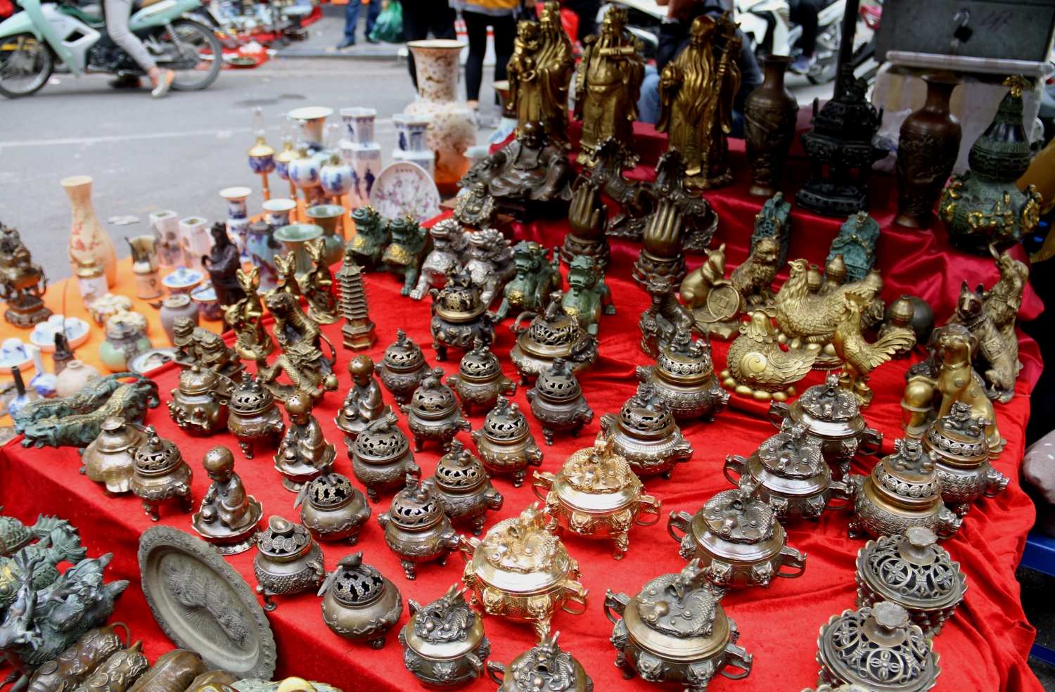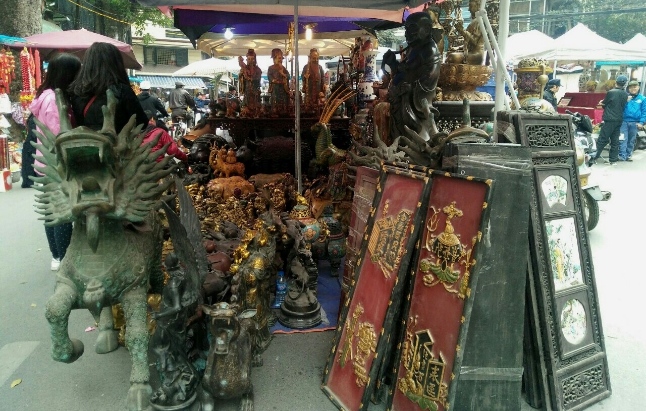 | Chợ đồ cổ, đồ cũ họp mỗi năm một phiên vào những ngày cận Tết Nguyên đán ở khu vực chợ hoa truyền thống |