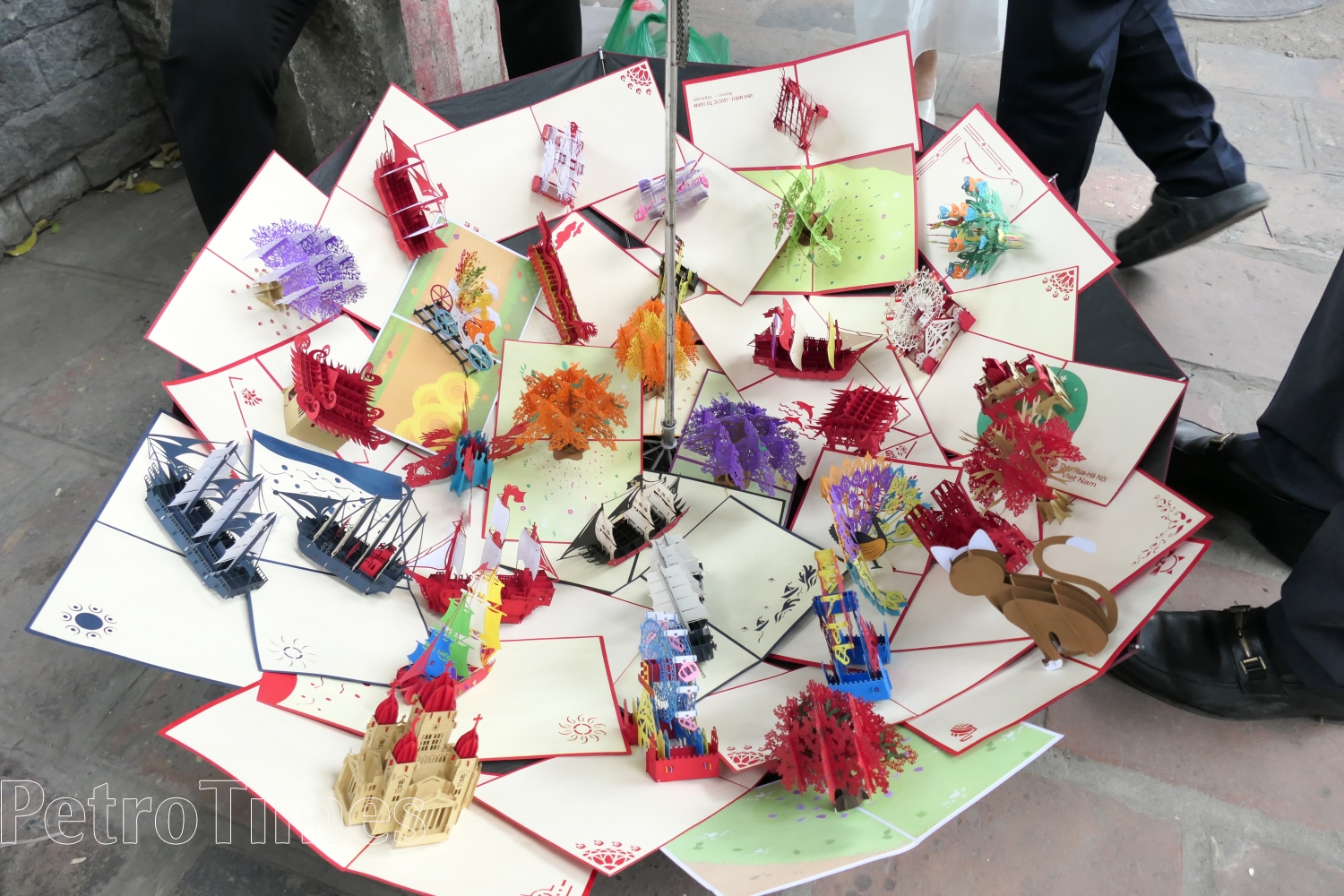 | Gian hàng bán đồ lưu niệm và chữ đã viết sẵn cho những người không có thời gian xếp hàng. |