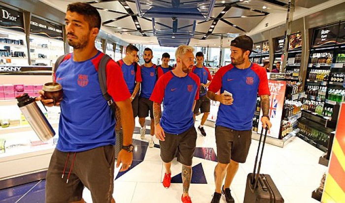 [PHOTO] Messi diện đầu mới cùng đồng đội sang Anh 'luyện công'