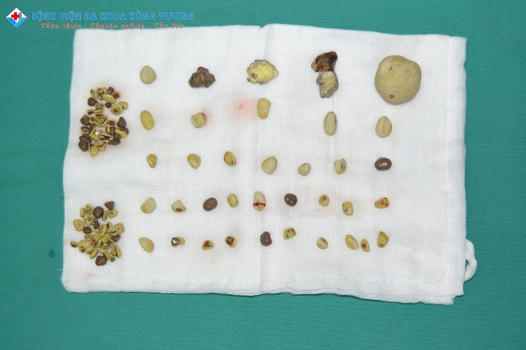 Ngay ngày hôm sau, các bác sỹ khoa Ngoại Bệnh viện Đa khoa Hùng Vương thực hiện phẫu thuật cho ông B. và lấy ra hơn 100 viên sỏi thận.