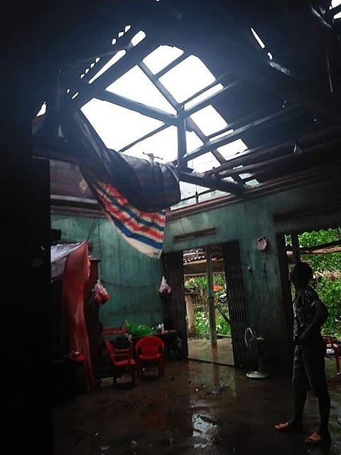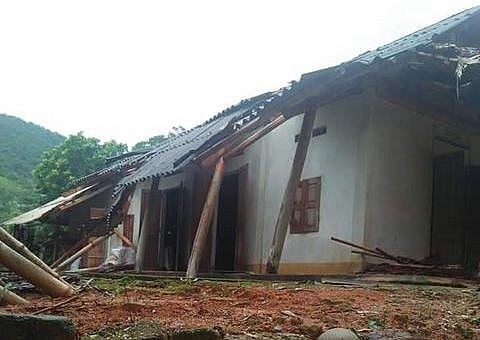| Ngôi nhà của người dân tốc mái, xiêu vẹo sau mưa giông. |