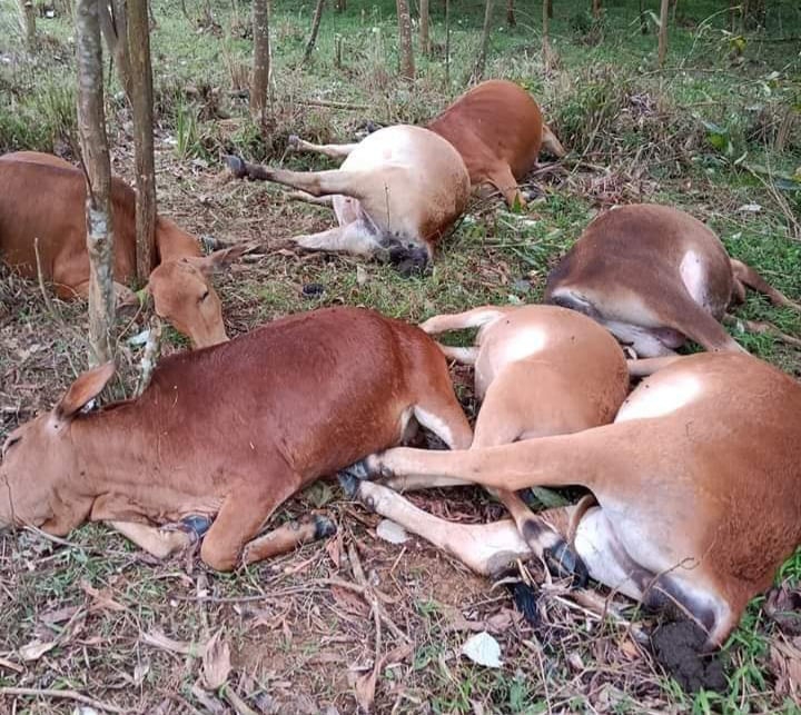 7 con bò bị sét đánh chết là của hai hộ gia đình (1 hộ có 5 con, 1 hộ có 2 con) do ông Hà Văn Hánh chăn hộ. Trong đó có ba con bò mẹ đang chửa.