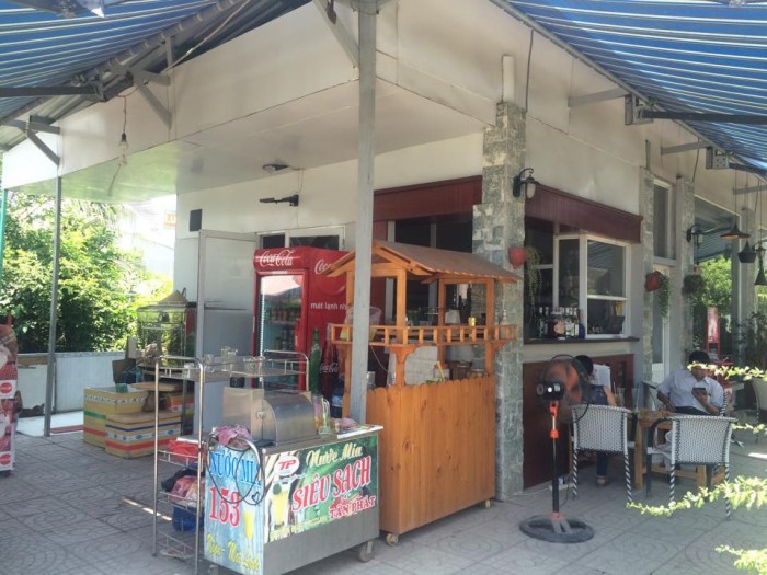 | Quầy phục vụ đơn sơ của quán với nhiều thức uống đóng chai có sẵn. |
