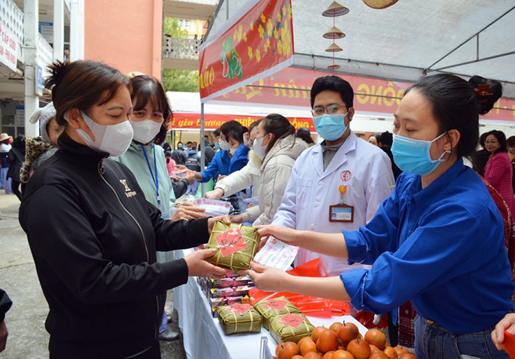 Tương tự, chiều 16/1, Bệnh viện Việt Nam-Thụy Điển Uông Bí đã tổ chức chương trình “Phiên chợ 0 đồng” - Kết nối yêu thương để trao tặng những phần quà Tết cho người bệnh đang điều trị nội trú tại bệnh viện.
