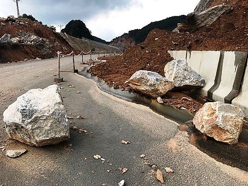 Mưa lớn trong những ngày qua đã khiến nhiều đoạn trên cao tốc Hạ Long - Vân Đồn (Quảng Ninh) xuất hiện hàng loạt điểm sạt lở nghiêm trọng. Cả nghìn khối đất đá tràn xuống lòng đường. Trong đó, từ nút giao phường Đại Yên (TP Hạ Long) vào đến đoạn An Lạc Viên (huyện Hoành Bồ) đã có gần chục điểm sạt lở.