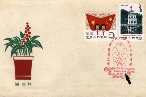 Cũng trong năm 1960, Trung Quốc là quốc gia thứ hai phát hành tem bưu chính để chào mừng Quốc khánh Việt Nam. Cụ thể, vào ngày 2/9/1960, Bưu chính Trung Quốc đã phát hành bộ tem “Kỷ niệm 15 năm Quốc khánh Việt Nam” với 2 mẫu tem thể hiện các hình ảnh Tháp Rùa, quốc kỳ và thiếu nhi hai nước Việt Nam và Trung Quốc.