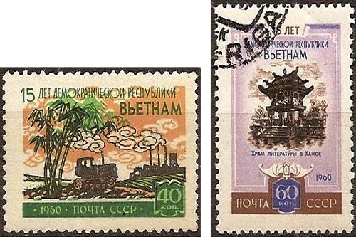 Ngày 1/9/1965 Bưu chính Liên Xô đa phát hành bộ tem “Kỷ niệm 20 năm Quốc khánh nước Việt Nam Dân chủ Cộng hòa” gồm 1 mẫu tem tập trung thể hiện các hình ảnh hoa sen, cây tre, kiến thiết đất nước.