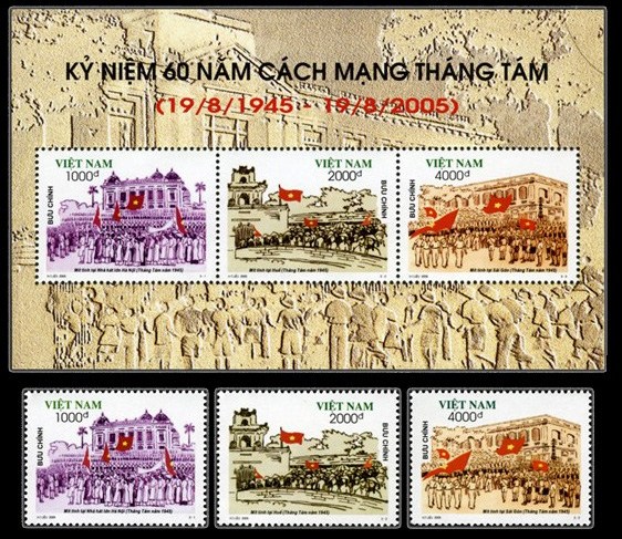 Bộ tem "Kỷ niệm 60 năm Cách mạng tháng Tám" gồm 03 mẫu, 01 Bloc, phát hành năm 2005.