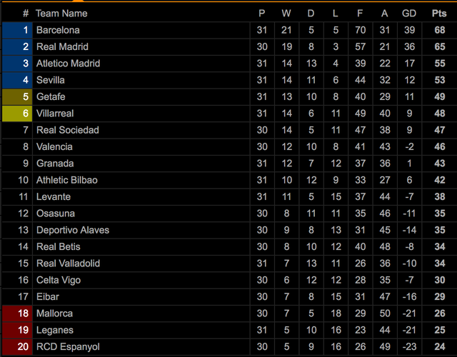 | Lịch thi đấu và kết quả vòng 31 La Liga |