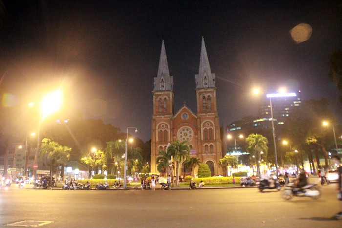 | Nhà thờ Đức Bà đêm cuối năm. |
