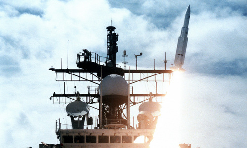 | Một quả đạn SM-2MR phóng từ USS Vincennes hồi năm 1987. Ảnh: US Navy. |