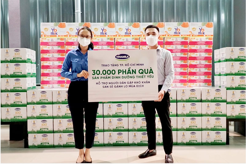 Bên cạnh sự hỗ trợ trực tiếp trên những mặt hàng tiêu dùng thiết yếu như sữa, thực phẩm dinh dưỡng cần thiết qua chương trình “San sẻ gánh lo mùa dịch”, trong dịp này, Vinamilk tiếp tục trao tặng 45.000 phần quà là các sản phẩm dinh dưỡng cho người dân gặp khó khăn vì dịch bệnh tại 3 địa phương: TP.HCM, Bình Dương và Đồng Nai. Đa số họ đều là người lao động bị ảnh hưởng việc làm, thất nghiệp, những bạn sinh viên có hoàn cảnh khó khăn hay người cao tuổi neo đơn... đang rất cần sự hỗ trợ trong thời điểm khó khăn hiện nay.