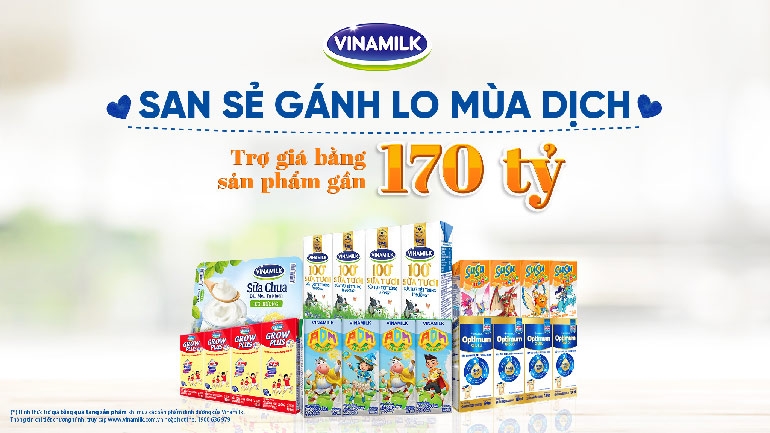 Trong tháng 8/2021, chương trình "San sẻ gánh lo mùa dịch" được Vinamilk thực hiện khắp 63 tỉnhthành trên cả nước, hỗ trợ quà tặng là các sản phẩm dinh dưỡng thiết yếu nhằm trợ giá cho người tiêu dùng. Mức trợ giá bằng sản phẩm có thể lên đến 60.000/sản phẩm với tổng giá trị hỗ trợ gần 170 tỷ đồng. Tham khảo thông tin chi tiết tại đây. |