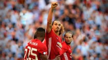 | Ibrahimovic phấn khích sau khi đưa MU lên đỉnh |