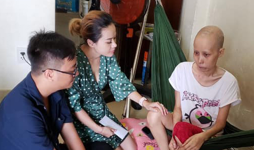 | Con gái Lê Bình (giữa) làm từ thiện theo di nguyện của cha. |