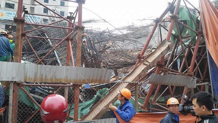 Tuy nhiên, việc cứu hộ gặp khó khăn vì một phần giàn giáo của cầu thang lên tầng 2 công trình bị sập, sắt thép và vật liệu xây dựng cùng với máy móc nằm ngổn ngang.