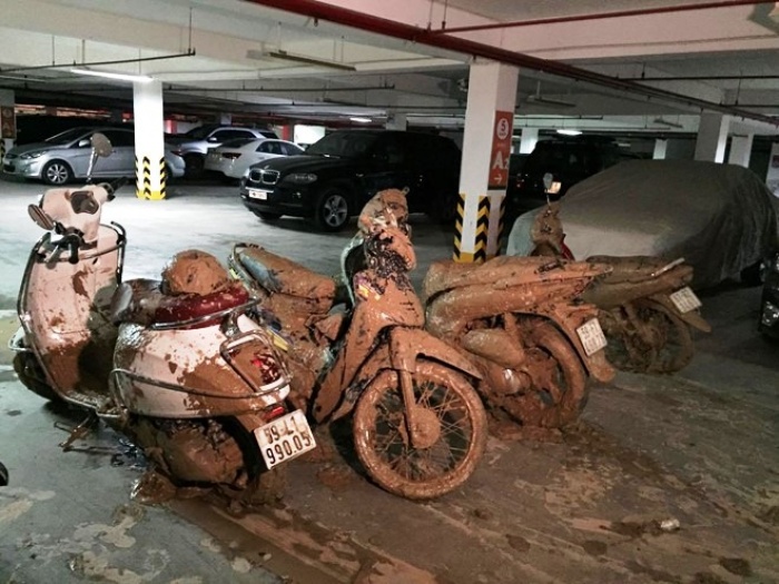 Sập tường hầm chung cư, bùn đất vùi lấp nhiều phương tiện