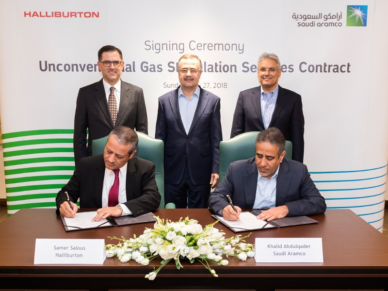 | Saudi Aramco ký Hợp đồng dịch vụ phát triển mỏ Jafurah với Halliburton. Ảnh: Saudi Aramco. |