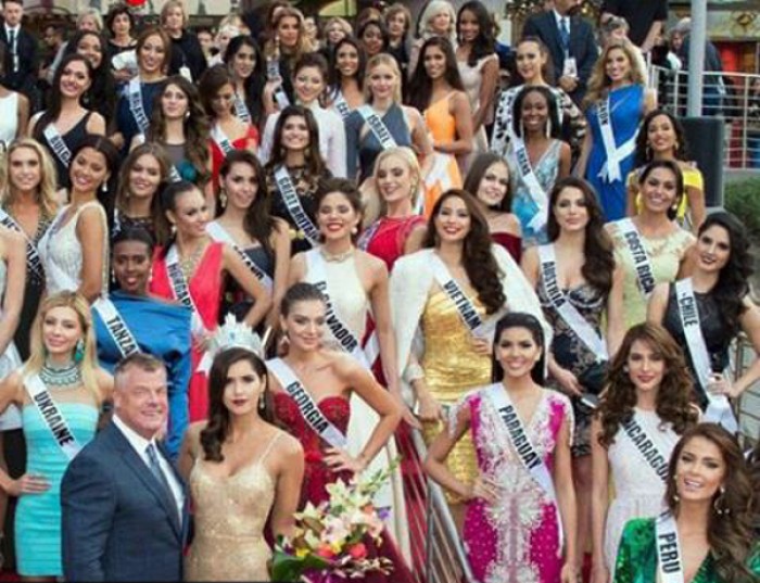 Cụ thể là mới đây, trên mạng xuất hiện một clip hậu trường hoạt động của các thí sinh Hoa hậu Hoàn vũ 2015. Trong clip ghi nhận cảnh các thí sinh chuẩn bị đón Hoa hậu Hoàn vũ 2014 - Pauline Vega tại nhà hát Planet Hollywood, Las Vegas.