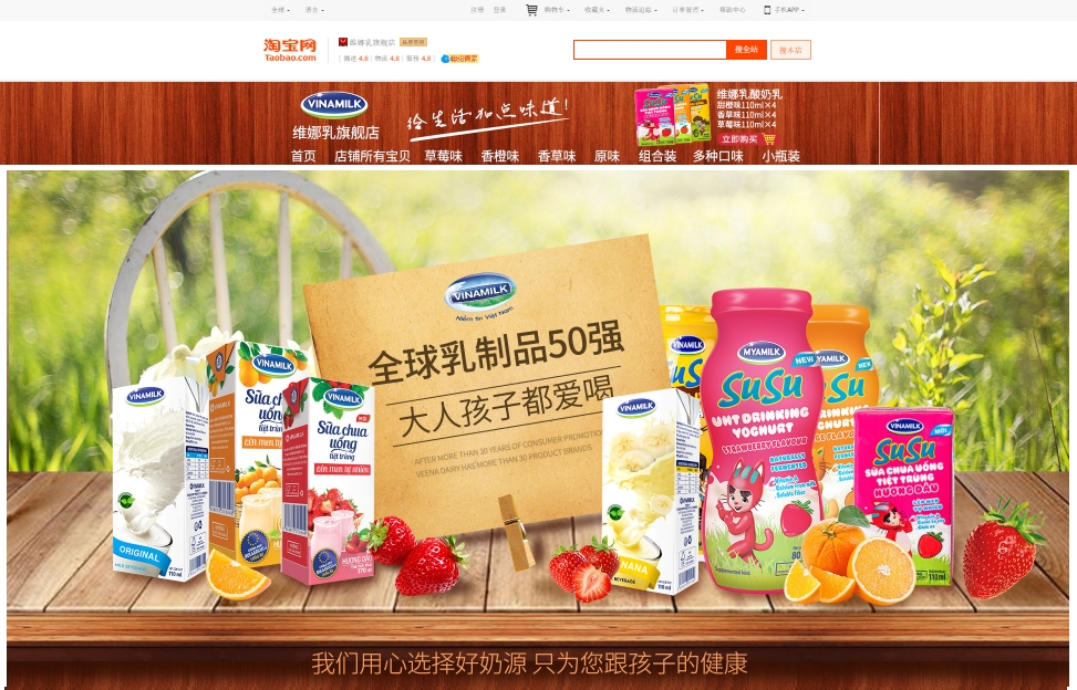 | Giao diện gian hàng online của Vinamilk trên Tmall, trang thương mại điện tử lớn của Trung Quốc |