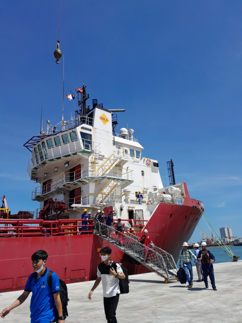 | 10-DPT-AD-0001: Bức ảnh mô tả sự háo hức của Người lao động sau ca làm việc phục vụ giàn khai thác được trở về với gia đình. |