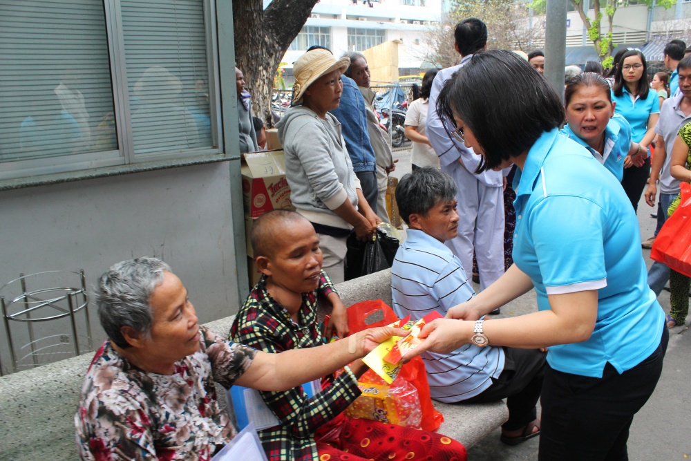 | 19-PNL-AB-0001-05: Thay mặt Ban Lãnh đạo và toàn thể CBNV, thuyền viên Công ty; BCH Công đoàn kết hợp cùng BCH Đoàn Thanh niên tổ chức thăm hỏi, tặng quà tết cho những bệnh nhân nghèo tại Bệnh viện Ung Bứu Tp. HCM . Việc tặng quà này góp phần san sẻ những khó khăn đồng thời gởi những món quà để tất cả bệnh nhân đang điều trị tại Bệnh viện có sự sẻ chia của tất cả CBNV, thuyền viên PVT Logistics cũng như toàn xã hội đến với người bệnh có hoàn cảnh khó khăn. |